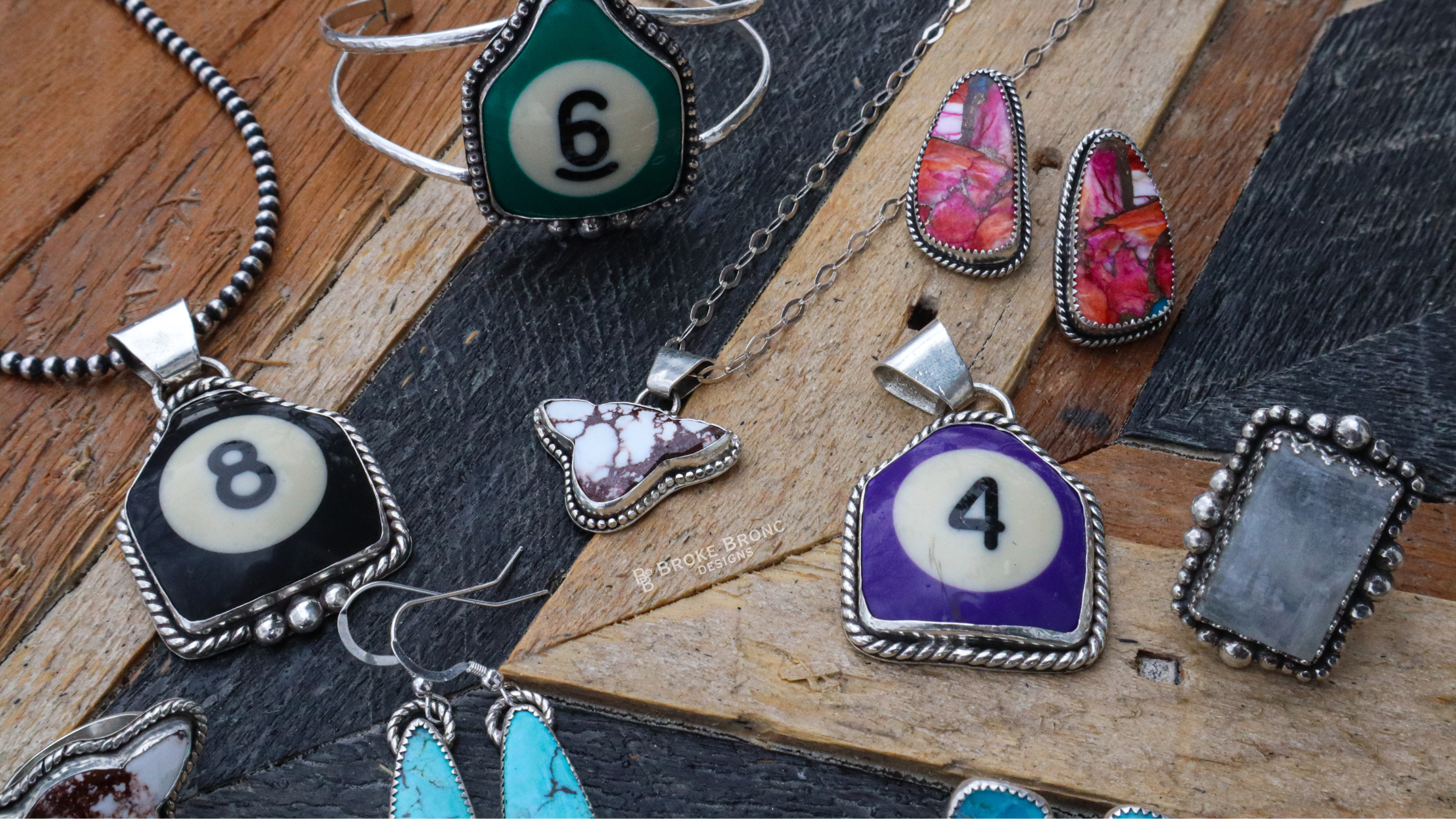 Broke Bronc Designs creates one-of-a-kind, handcrafted sterling silver jewelry inspired by the western way of life. Each piece is individually made using traditional silversmithing techniques and set with genuine, precious stones such as turquoise. Rooted in craftsmanship and authenticity, these designs are made with intention and built to last a lifetime. In addition to fine jewelry, Broke Bronc Designs offers handcrafted leather accessories including jewelry boxes, hair clips, and wild rag slides, along with western-inspired apparel and hats. Every piece reflects a commitment to quality, durability, and timeless western style—made to be worn, used, and passed down for generations.